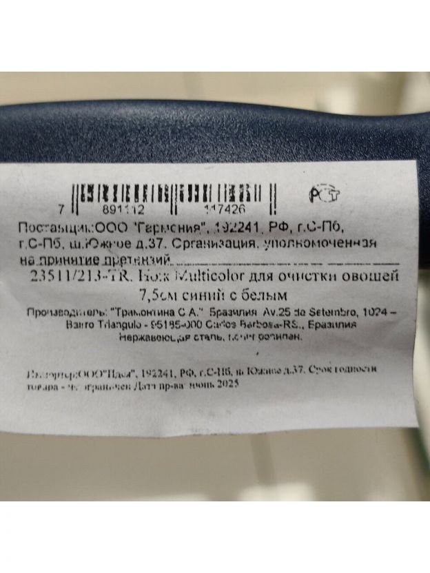 Нож кухонный Tramontina, Multicolor, для овощей, нержавеющая сталь, 7.5 см, рукоятка пластик, 23511/213-TR