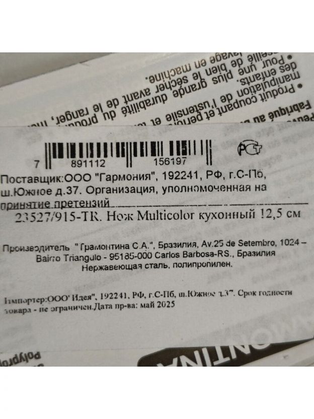 Нож кухонный Tramontina, Multicolor, универсальный, нержавеющая сталь, 12.5 см, рукоятка пластик, 23527/915-tr