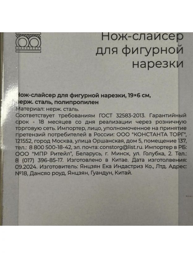 Нож кухонный слайсер, для фигурной нарезки, 19х6 см, нержавеющая сталь, рукоятка пластик, навеска, 884-068