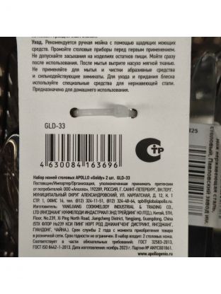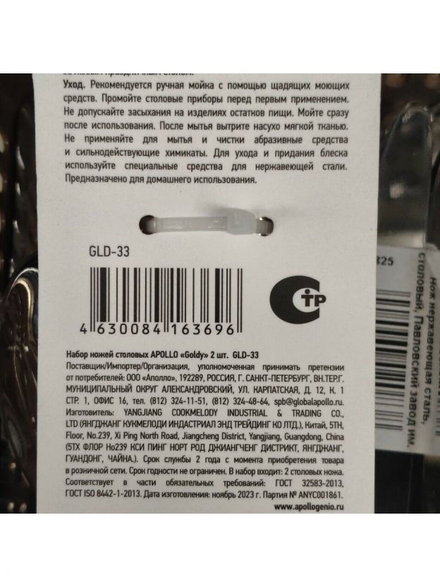 Нож нержавеющая сталь, 2 предмета, столовый, Apollo, Goldy, GLD-33