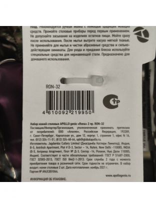 Нож нержавеющая сталь, 2 предмета, столовый, Apollo, Rona, RON-32