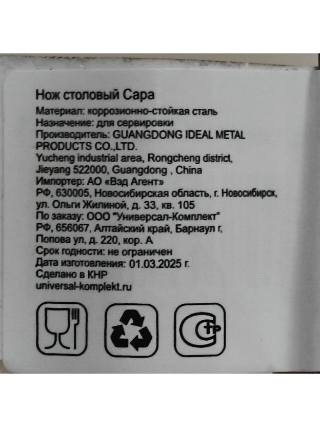 Закажите столовый нож Катунь Сара КТ-059-НС-1 по выгодной цене — быстрая доставка, гарантия оригинального качества и возможность купить недорого столовый нож для дачи или дома.