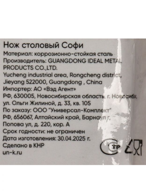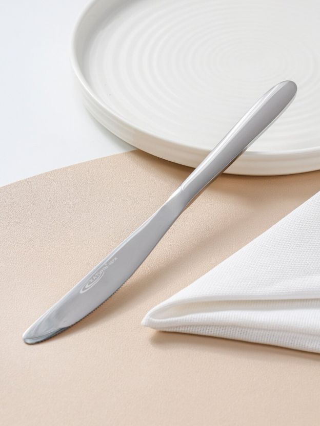 Нож из коллекции Катунь Софи изготовлен из прочной нержавеющей стали. Это оптимальный выбор для тех, кто ищет недорогой столовый нож для дома или дачи, который не требует особого ухода и сохраняет внешний вид даже при регулярном использовании. Серебристый цвет и современный стиль органично впишутся в любую сервировку стола, а отсутствие покрытия гарантирует безопасность при контакте с продуктами.