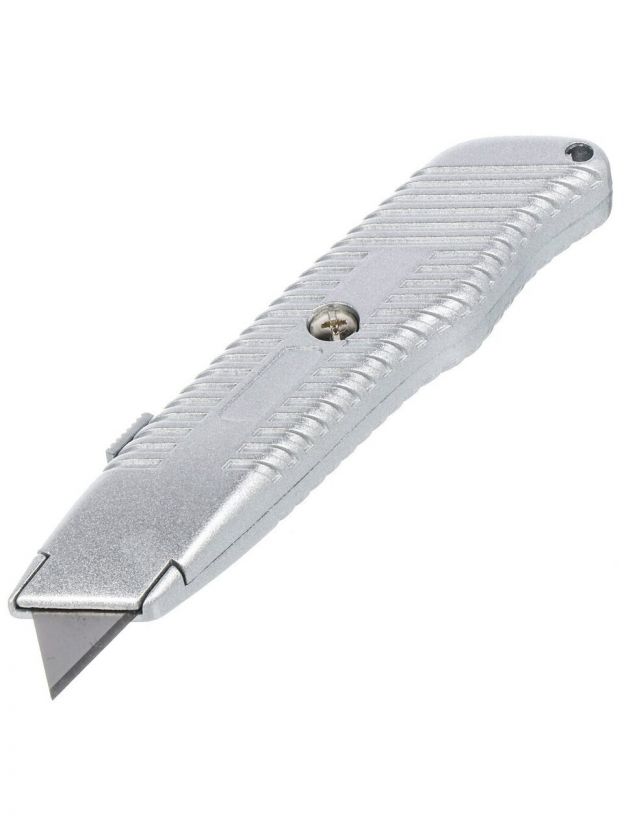 Корпус инструмента изготовлен из металла, что делает его максимально прочным. Сменные лезвия фиксируются внутри корпуса.