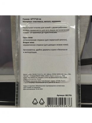 Настольная точилка для ножей с двумя рабочими зонами применяется для всех видов металлических ножей - от кухонных до туристических. Одна зона: металлические стержни (для первичной заточки), вторая зона: керамические стержни (для доводки лезвия ножа). Эргономична, удобно держать в руке и безопасна в эксплуатации.
