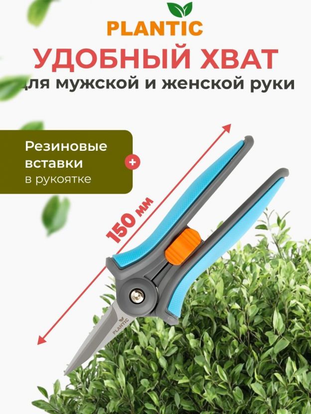 Ножницы для травы, 150 мм, лезвие плоскостное, Plantic, Light L62, 25262-01
