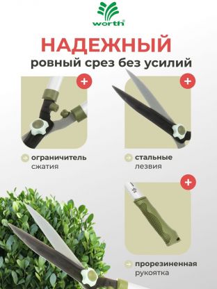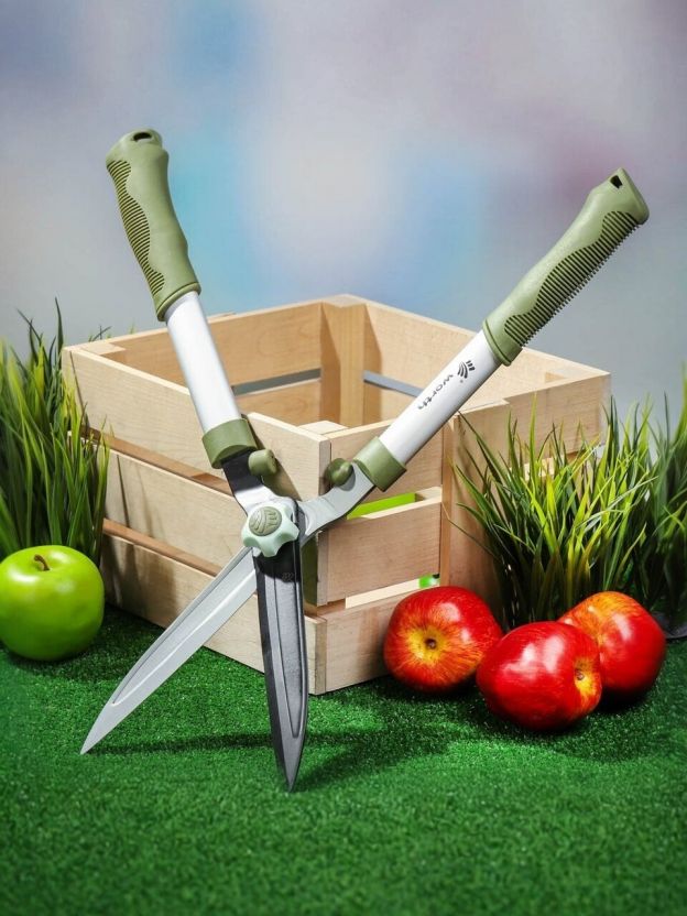 Ножницы предназначены для поддержания формы живой изгороди или других элементов ландшафтного дизайна из кустарников и деревьев.