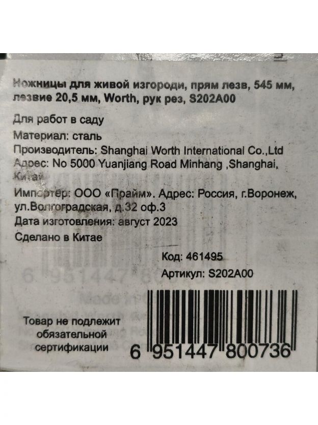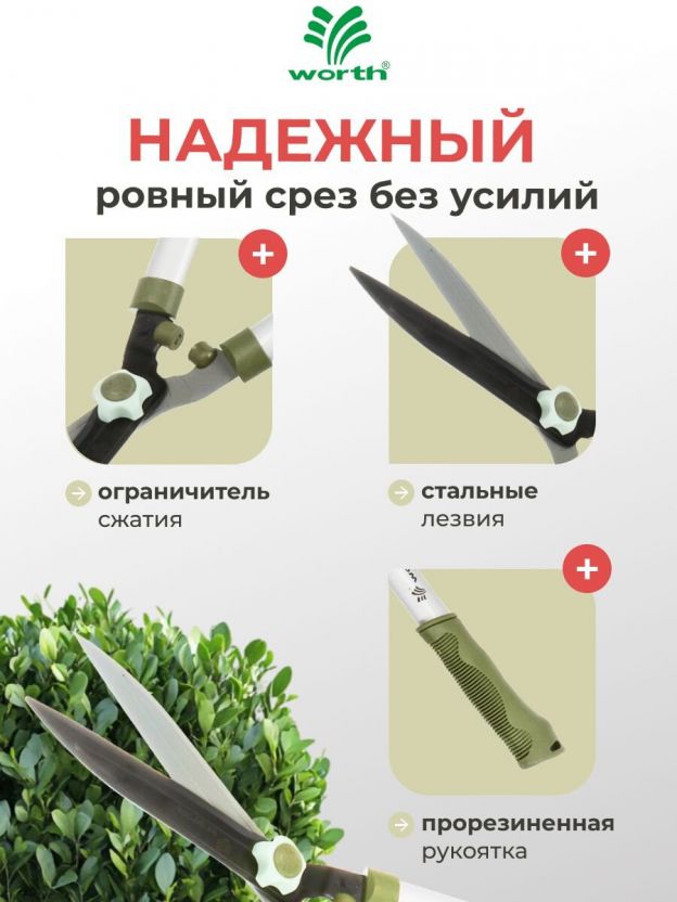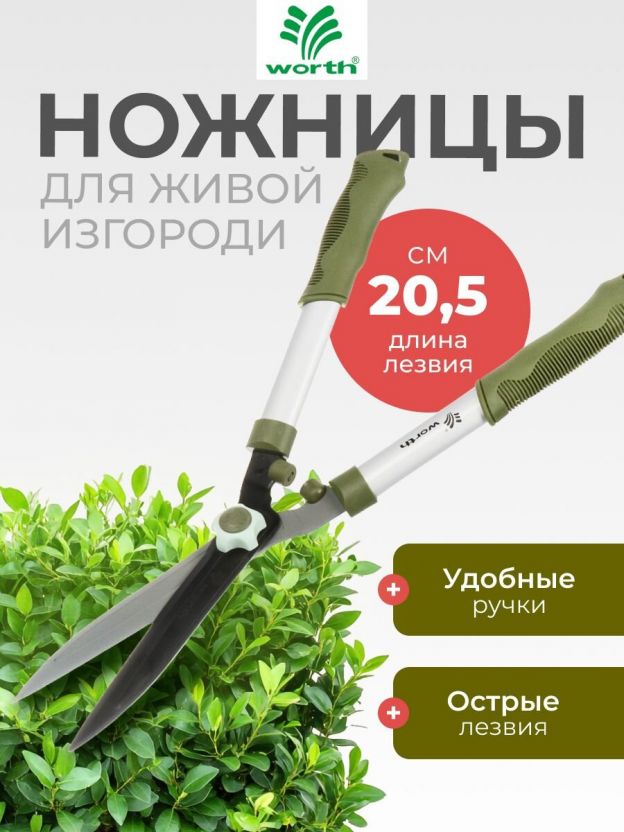 Ножницы для живой изгороди, 545 мм, лезвие прямое, лезвие 20.5 см, Worth, рукоятка резина, S202A00