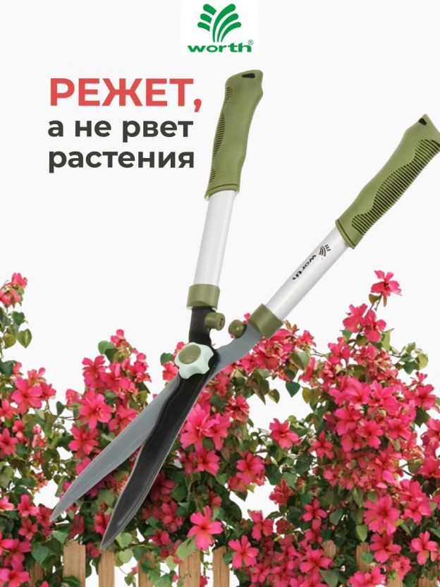 Ножницы для живой изгороди, 545 мм, лезвие волнообразное, лезвие 20.5 см, Worth, рукоятка резина, S201A00