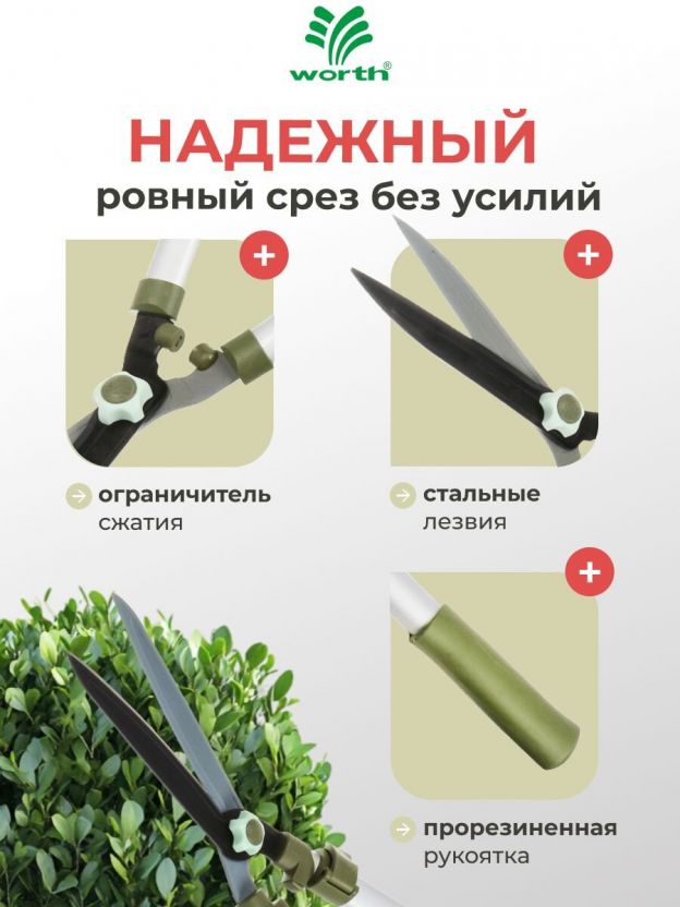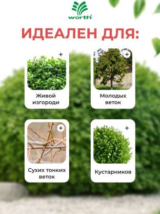 • Форма лезвия позволяет создавать декоративные формы и узоры при стрижке живой изгороди.