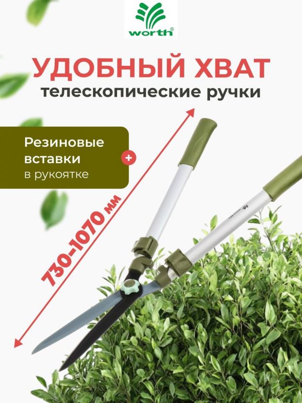 Ножницы для живой изгороди, 730-1070 мм, лезвие прямое, лезвие 25 см, Worth, телескопическая штанга, рукоятка резина, S226A00