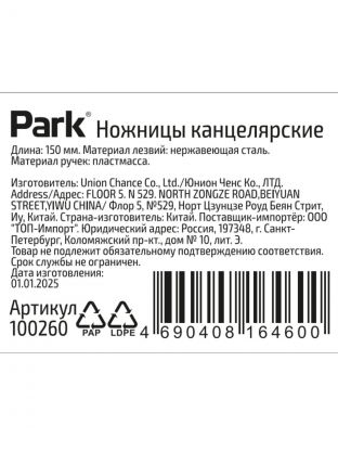 Ножницы канцелярские Park 150 мм: долговечная нержавеющая сталь, эргономика и универсальность для дома, офиса и творчества. Решение для точной резки без усилий.