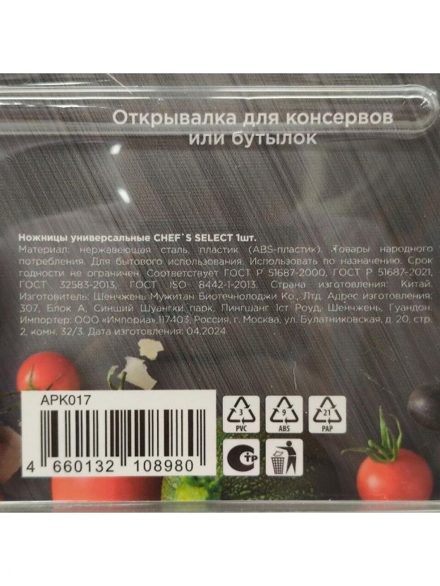 Ножницы кухонные, навеска, Attribute, CHEF`S SELECT, APK017