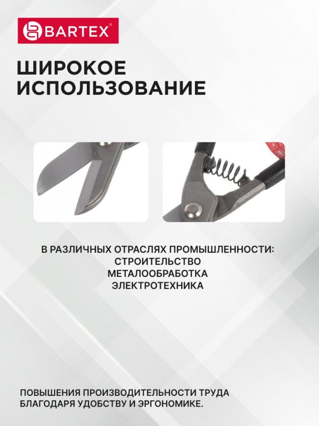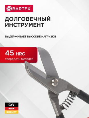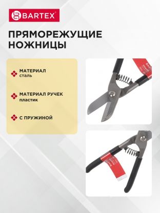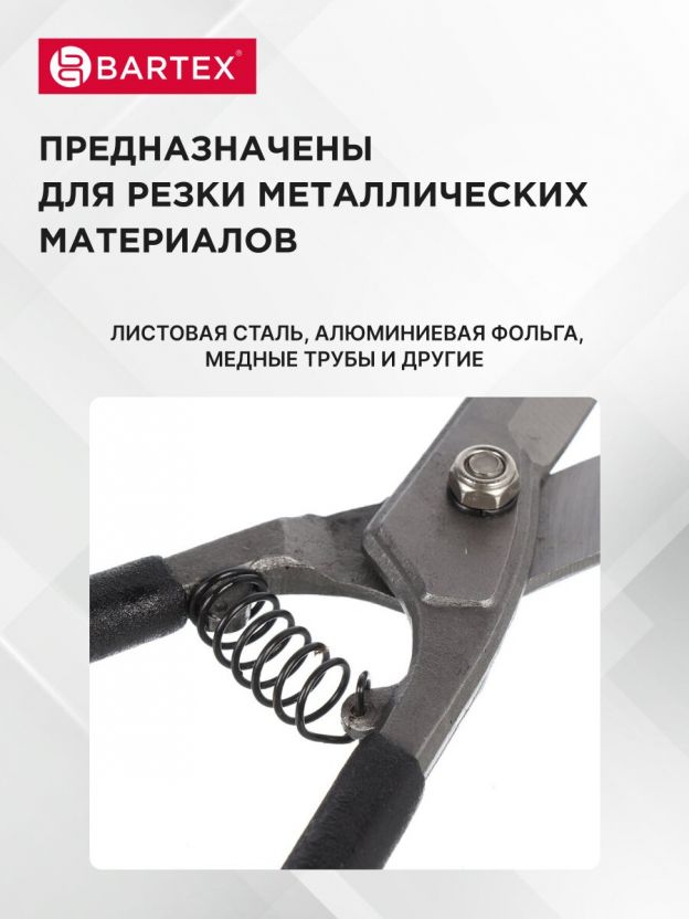 Ножницы по металлу пряморежущие, 200 мм, с пружиной, черные ручки, Bartex