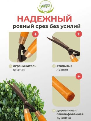 Предназначены для декоративной обрезки кустарников и формирования кроны. Волнистые лезвия изготовлены из высококачественной стали. Деревянные ручки отшлифованы и покрыты лаком. Это создаёт дополнительное удобство для резки.