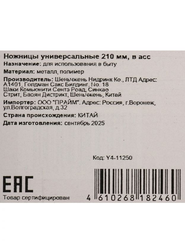 Универсальные ножницы 210 мм (артикул Y4-11250) — практичный выбор для тех, кто ищет надёжный инструмент для ежедневных задач. Благодаря универсальному типу и оптимальной длине, этот аксессуар отлично справляется с резкой бумаги, ткани, упаковочных материалов и даже тонкого пластика. Часто спрашивают: "Как выбрать ножницы для дома?" — этот вариант подойдёт большинству пользователей благодаря сбалансированному размеру и эргономичному дизайну.