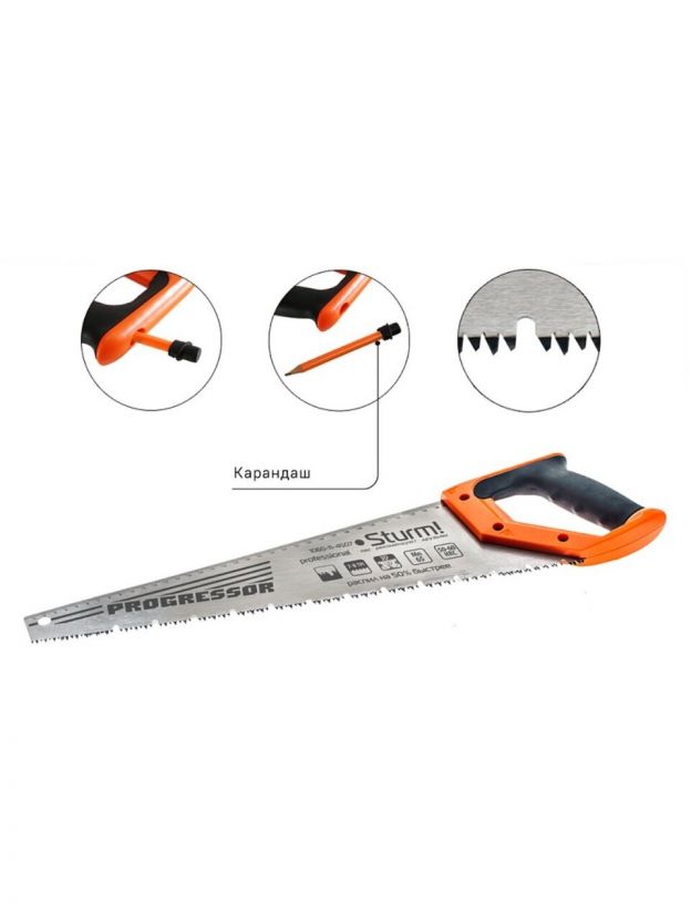Ножовка по дереву, 450 мм, 7-8 TPI, Sturm, зуб-3D, карандаш, 1060-12-4507