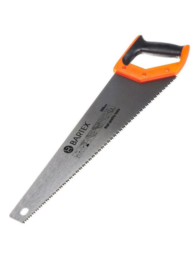 Ножовка по дереву Bartex – незаменимый инструмент для владельцев частных домов. Это отличный помощник для поддержания эстетичного вида загородного или приусадебного участка. Благодаря ножовке Bartex уровень Ваших столярных, плотницких или садовых работ станет на порядок выше при тех же временных затратах. Удобная прорезиненная рукоятка не допустит выскальзывания инструмента. Даже спустя продолжительное время работы руки мастера не почувствуют усталости, благодаря комфортному захвату.