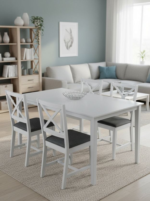 Стол и стулья легко поместятся даже в небольшом помещении, не занимая много места. Это особенно важно для квартир с ограниченными площадями или для тех, кто предпочитает максимально использовать пространство.