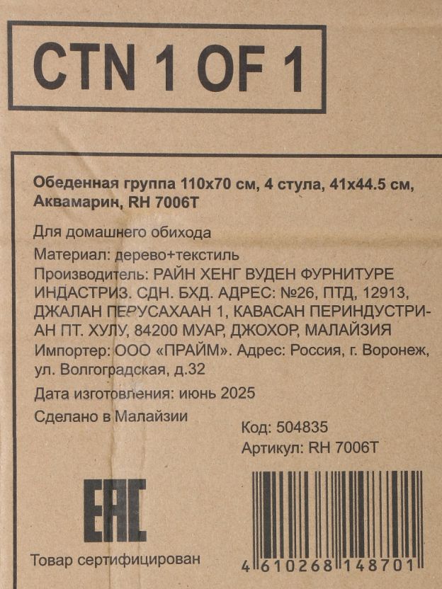Если вы ищете, что лучше для семьи из четырёх человек или как выбрать обеденный стол для дачи, обратите внимание на этот набор: компактные размеры позволяют экономить место, а материалы рассчитаны на долгий срок службы. В отличие от аналогов из ДСП или пластика, массив дерева и текстильное покрытие повышают долговечность и устойчивость к износу. Комплект поставляется в полной комплектации — не нужно докупать стулья отдельно.