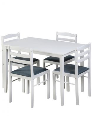 - Практичные параметры: стол 70х110 см и стулья 41х44.5 см из дерева с текстильной обивкой рассчитаны на 4 персоны, подходят для ежедневного использования