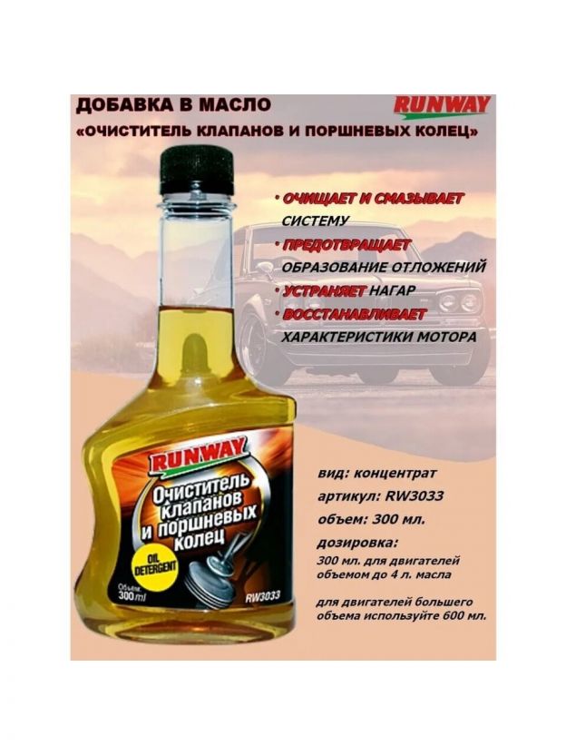 Очиститель для клапанов и поршневых колец, 300 мл, Runway, RW3033