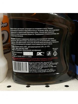 Действие: очищение деталей двигателей.