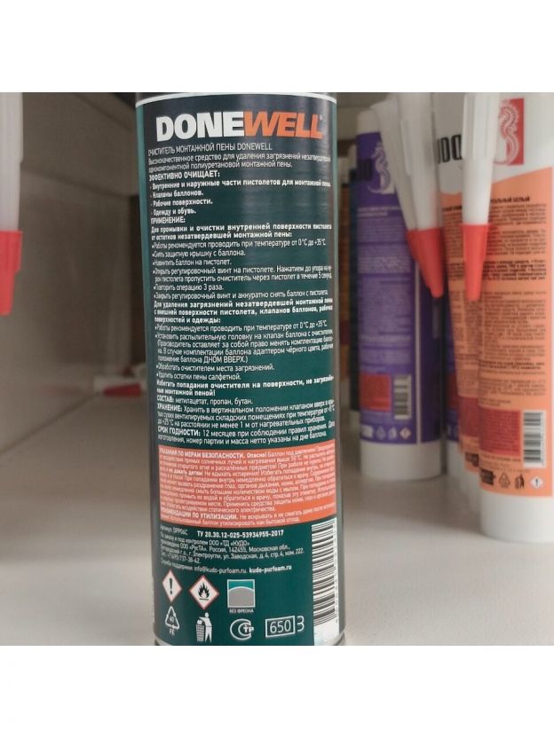 Очиститель от монтажной пены, 0.65 л, Donewell