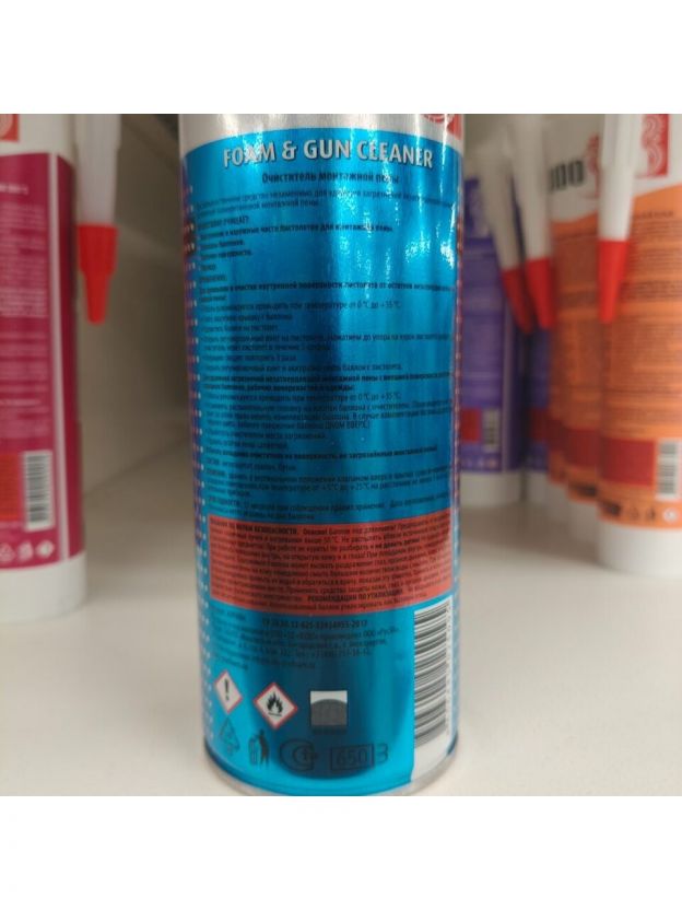 Для удаления загрязнений незатвердевшей монтажной пены с внешней поверхности пистолета, клапанов баллонов, рабочих поверхностей и одежды: