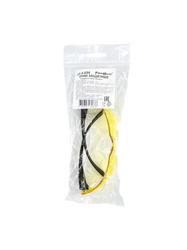 Очки защитные, поликарбонат, ударопрочные, открытого типа, желтые, 22-3-034