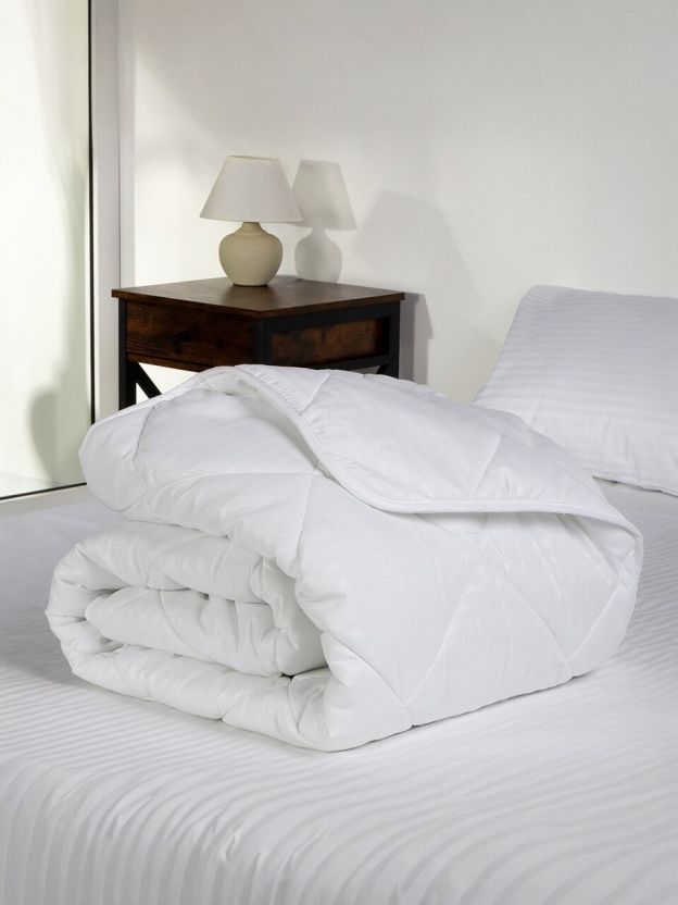 В отличие от аналогов с натуральным пухом или ватином, файбер не вызывает аллергию, не накапливает запахи и прост в уходе: можно стирать в машине без потери формы. Если вы ищете, чем отличается всесезонное одеяло для дачи от зимнего, обратите внимание на его среднюю степень теплоты — оно не перегревает летом и сохраняет тепло зимой. Одеяло подходит для подростков, взрослых и гостей, его часто покупают для подарка благодаря универсальному белому цвету и современному стилю.