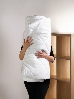 Одеяло можно стирать в стиральной машине при температуре до 40°C, оно быстро сохнет и не теряет форму благодаря стёжке и прочному полиэстеровому чехлу.