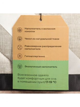 - Экологичное решение: наполнитель из конопли и полиэфирного волокна — гипоаллергенный, дышащий, безопасный для здоровья