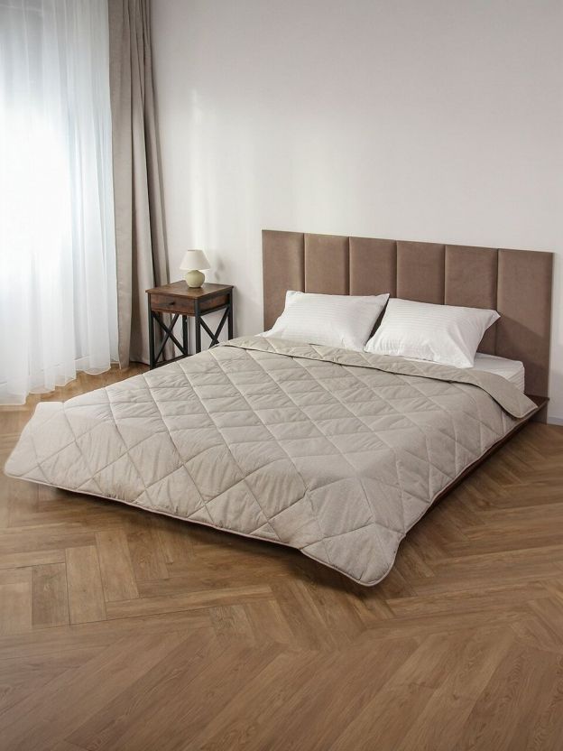 Одеяло 1.5-спальное Moyё от ИвШвейСтандарт сочетает в себе инновационный натуральный наполнитель (конопля и полиэфирное волокно) с прочным сатиновым чехлом из хлопка. Благодаря средней плотности 300 г/м2 и стеганой структуре, одеяло обеспечивает оптимальный микроклимат — не перегревает летом и сохраняет тепло зимой. Такой вариант выбирают, когда ищут всесезонное одеяло для дома, дачи или квартиры, а также как подарок для близких.