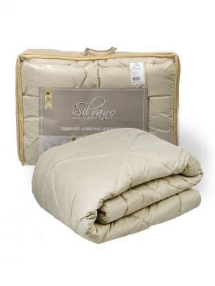 Одеяло 1.5-спальное, 140х205 см, Овечья шерсть, 400 г/м2, зимнее, чехол 100% хлопок, кант, Silvano