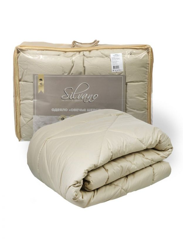 Одеяло 1.5-спальное Silvano из овечьей шерсти 140х205 см — тёплый выбор для зимы: натуральный наполнитель, чехол 100% хлопок, уют без перегрева.
