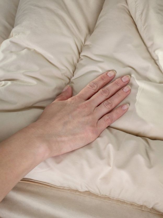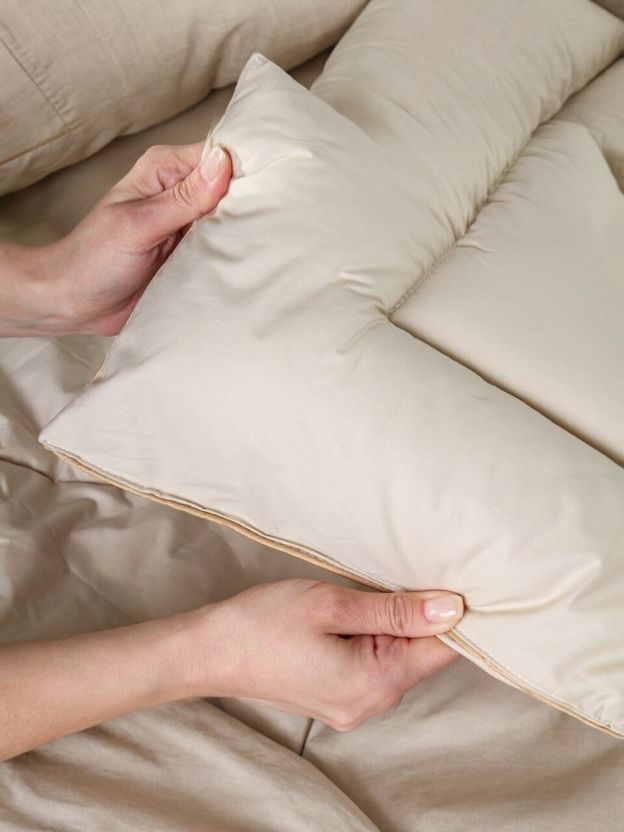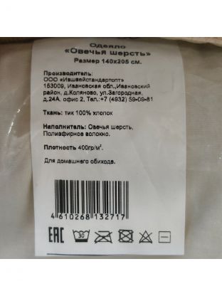 Чехол изготовлен из 100% хлопка, а натуральная шерсть хорошо регулирует влажность и препятствует размножению пылевых клещей. Однако при индивидуальной непереносимости шерсти рекомендуется проконсультироваться с врачом.