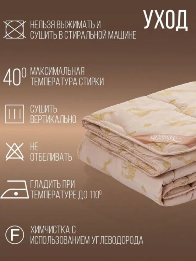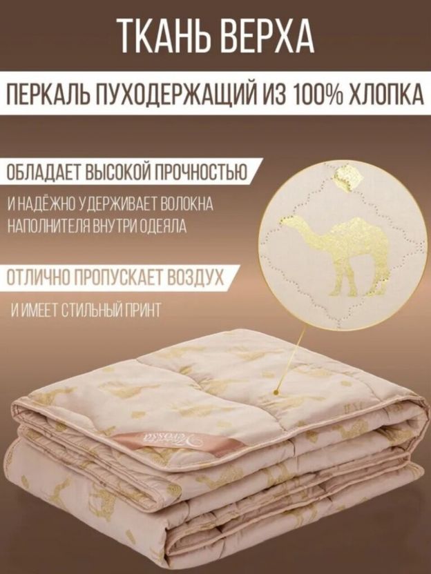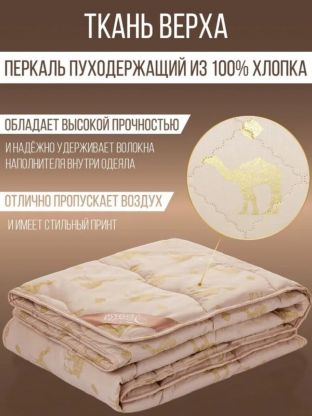 • Натуральная верблюжья шерсть — сохраняет тепло, регулирует влажность и обеспечивает здоровый сон