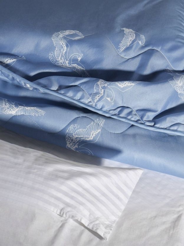 • Облегчённое одеяло с полиэфирным волокном: комфорт без перегрева, гипоаллергенность, лёгкий уход
