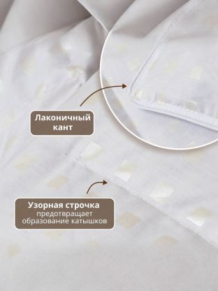 • Комфорт зимой — натуральный наполнитель (60% пух, 40% перо) и кассетная стежка для равномерного тепла