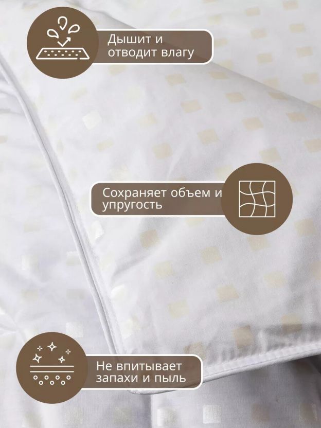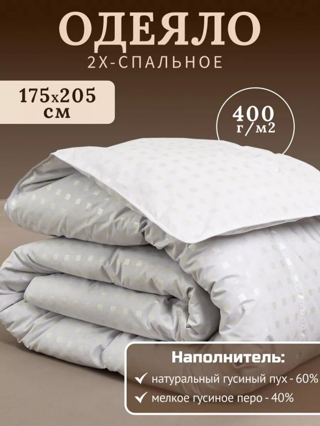 Одеяло 2-спальное 175х205 см Формула: уют и тепло зимой благодаря 60% пуху, натуральному тиковому чехлу и средней плотности для комфортного сна.