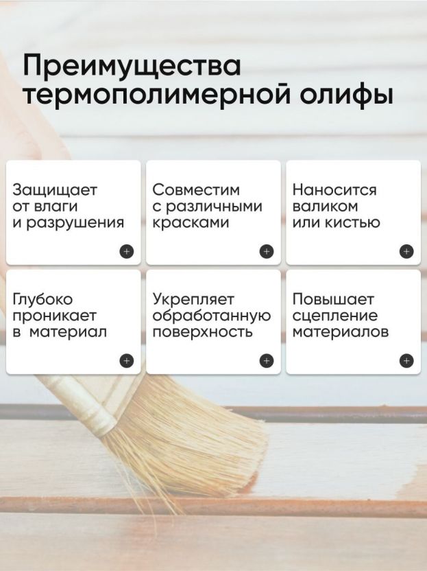 Покупка олифы 10 л, НХП, термополимерная — это уверенность в долговечности и красоте обрабатываемых поверхностей. Такой выбор позволяет сэкономить на ремонте и уходе, а также получить эстетически привлекательный и надежный результат. Олифа идеально подходит для тех, кто ценит качество, эффективность и удобство в использовании.