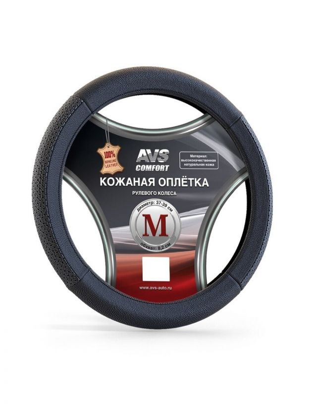 Оплетка на руль AVS, GL-930M-B М, A78676S, натуральная кожа, М, черная
