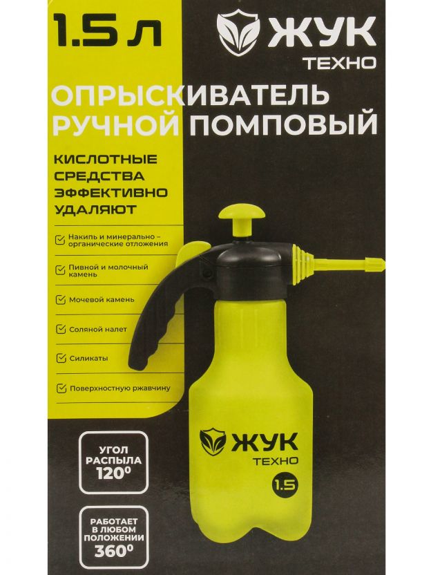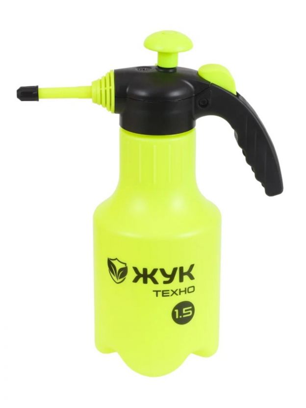 Опрыскиватель Жук 1.5 л Техно — удобное решение для ухода за комнатными и садовыми растениями: помповый механизм, лёгкий вес, регулировка распыления.