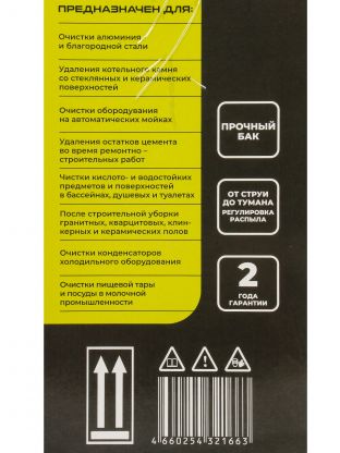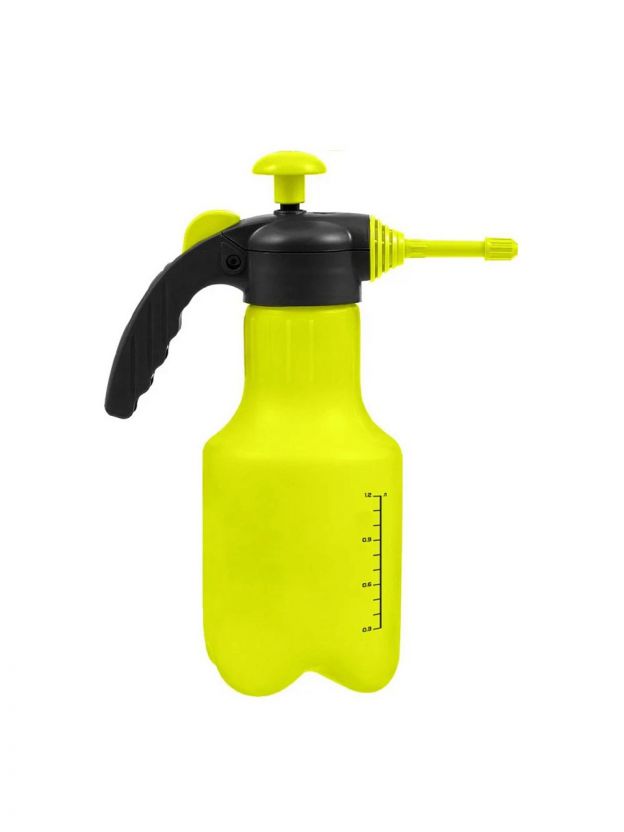- Компактный объём 1.5 л и малый вес (0.4 кг) — удобно держать одной рукой, пластиковый корпус устойчив к химикатам.