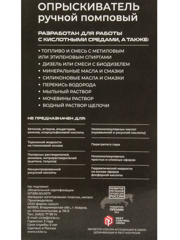 - Простота и надёжность: ручной помповый механизм обеспечивает равномерное распыление без подзарядки.