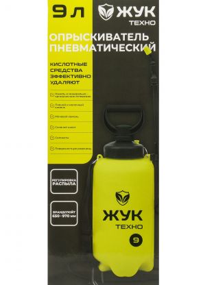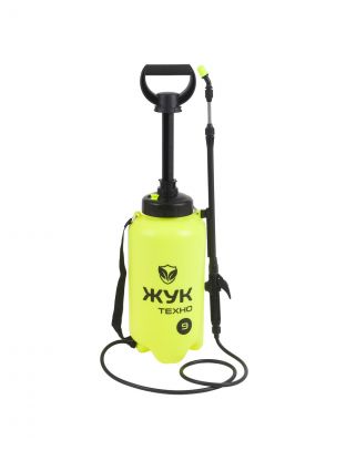 Объем бака — 9 литров, длина телескопической штанги — 970 мм, механизм — ручной помповый, цвет — зеленый, бренд — Жук, модель — Техно, артикул 321687-00.