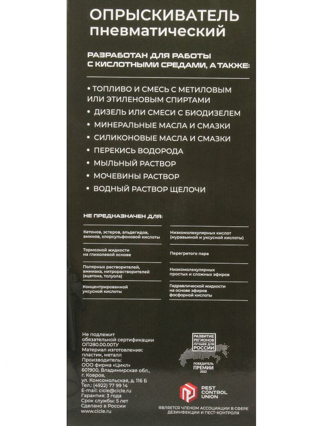 - Точная регулировка распыления — подходит для любых типов жидкостей, включая химикаты и удобрения.