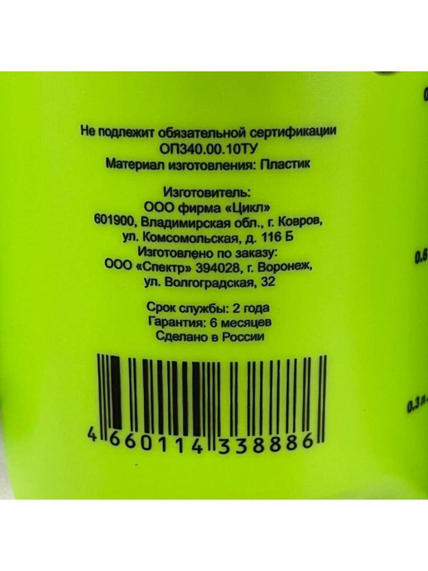 Размеры опрыскивателя (ДхШхВ): 21х11х27 см.