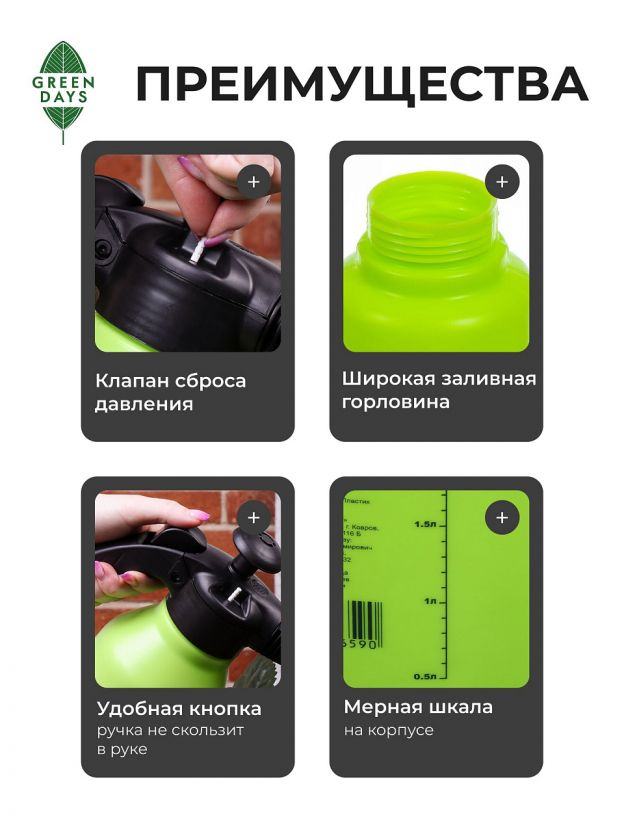 Опрыскиватель садовый Green Days, 3 л, пластик, 6590-00, салатовый